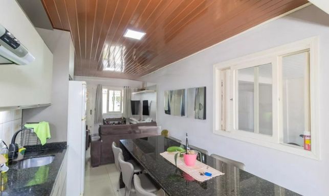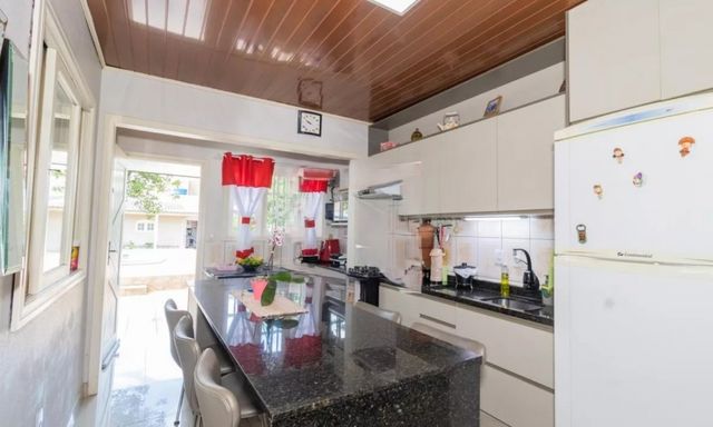 RUDI IMÓVEIS - Casa de Alvenaria Semimobiliada, e reformada localizada na rua Protásio Alves, bairro Niterói - Canoas, com 185,00 m² de área privativa , composto por 3 dormitórios, 2 banheiros sociais, living dois ambientes, sala de estar e jantar, cozinha integrada e planejada, piso porcelanato, área gourmet com churrasqueira, área de serviço e lavanderia, pátio gramado e arborizado, com piscina, e 2 vagas de garagem fechada. Loja Comercial com 45,00 m² na frente.